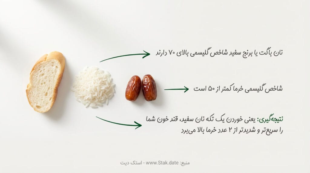 برخلاف تصور عموم، همه شیرینیها یکسان نیستند. وقتی شما یک نان خامهای میخورید، قند خونتان مثل یک ترن هوایی به سرعت بالا میرود و بدن مجبور میشود انسولین زیادی ترشح کند (Spike). اما تاثیر خرما بر قند خون بارداری متفاوت است.