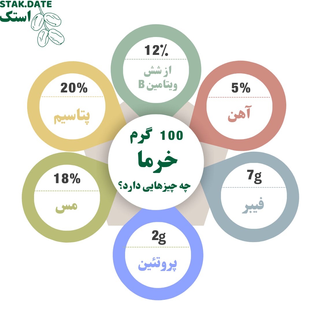 | تقویت سلامت استخوان | خرما سرشار از مواد معدنی و ویتامینهای ضروری برای سلامت استخوان مانند سلنیوم، پتاسیم، فسفر، منیزیم، کلسیم و ویتامین K است. |